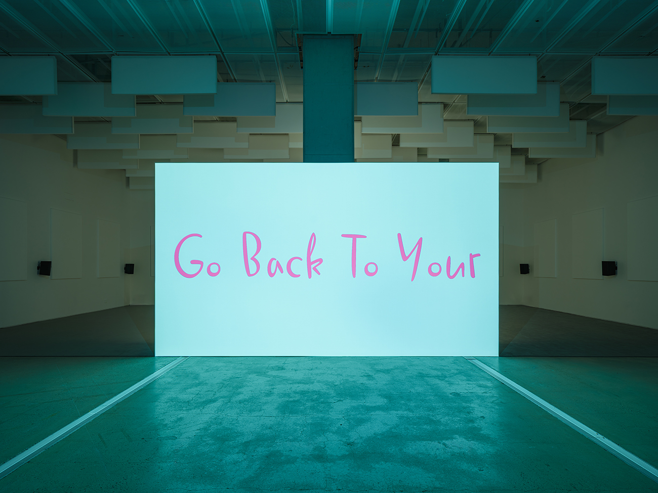 Go Back To Your offers a different conceptualization of the public, democratic space constituted as a space of audition. Hearing and listening flesh out notions of the public and the democratic as much as speaking as a representational act. Hearing and listening reconsider questions of address, in the way audition is always already ecological—addressed to whoever listens or hears, constitutive of belonging that exceeds the immediacy and intimacy of the optic or the haptic. When audition becomes the site of belonging, its subjects are everyone who hears and listens. When audition becomes the site of violence, its victims are everyone who hears and listens. Within these parameters, Kim stages the scenography and choreography of the democratic as it is made material not by who recognizes its people or its symbols, but by who is interpolated by speech in this open-ended spatiotemporal situation.