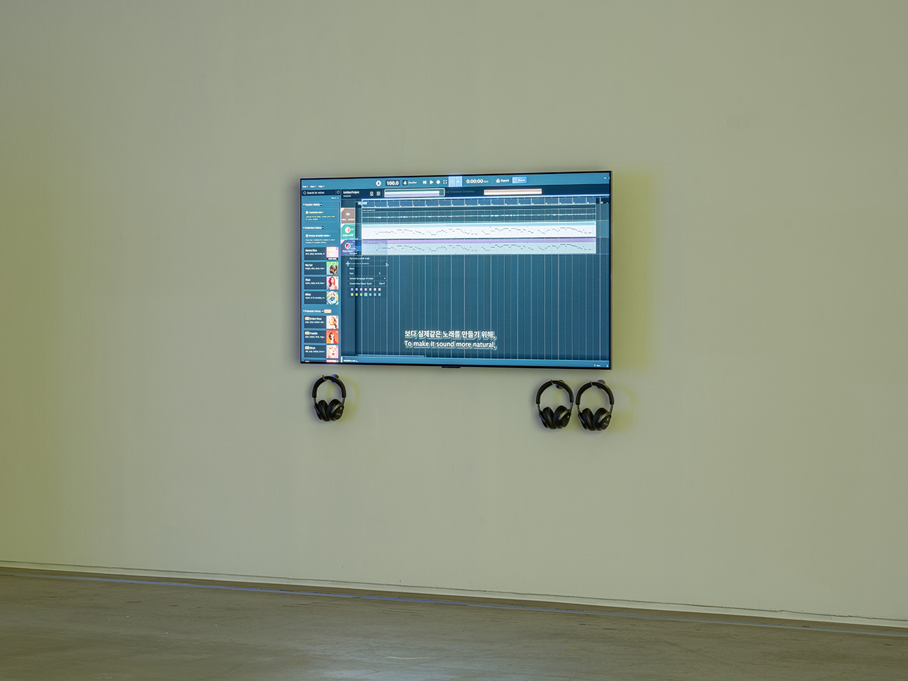 Go Back To Your (2025) is a single-channel video that immerses its audience in the sounds of racist violence experienced by Korean women in America. In the soundscape, amidst the sounds of falling rain, a voice is heard shouting, “Go back to your country.” The protagonists’ response to this racist invocation is displayed as text. She replies: “I hesitated for a moment, then walked toward you. You looked startled and took out your phone, threatening to call the police. I said, “I was born here.” The xenophobic call to return to a place one was never from is met with a response that, for the antagonist, provokes an unanticipated reaction that, coupled with her subjectivity, is also perceived as threatening. The affective charge of the statement “I was born here” elicits a defiant impulse towards subjection. Koreans carry histories of militarized violence and trauma that have led to erasures and silences, conditioned by unspeakable loss.21 Akin to Grace Cho’s methodology of writing to “flesh out the ghosts” of disavowed history, Kim YoungEun’s sonic ethnographies recognize that the trauma of racism is a “transgenerational haunting.” The text in Go Back To Your gives form to alterity and voices agencies that may have, in the past, been too painful to articulate.